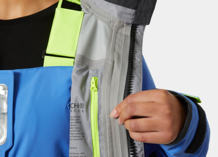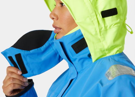 Bunda je navržena s důrazem na maximální funkčnost a pohodlí při plavbě. Nastavitelná kapuce, obličejový štít, manžety i spodní lem umožňují přizpůsobit střih aktuálním podmínkám. Praktické prvky doplňují reflexní detaily SOLAS pro lepší viditelnost, zesílené části na namáhaných místech, velké kapsy na vybavení a přední zip s dvojitou ochrannou légou proti větru a vodě. Konstrukce bez ramenních švů navíc zvyšuje ochranu proti pronikání vody, což ocení zejména jachtaři plující v drsném počasí.
